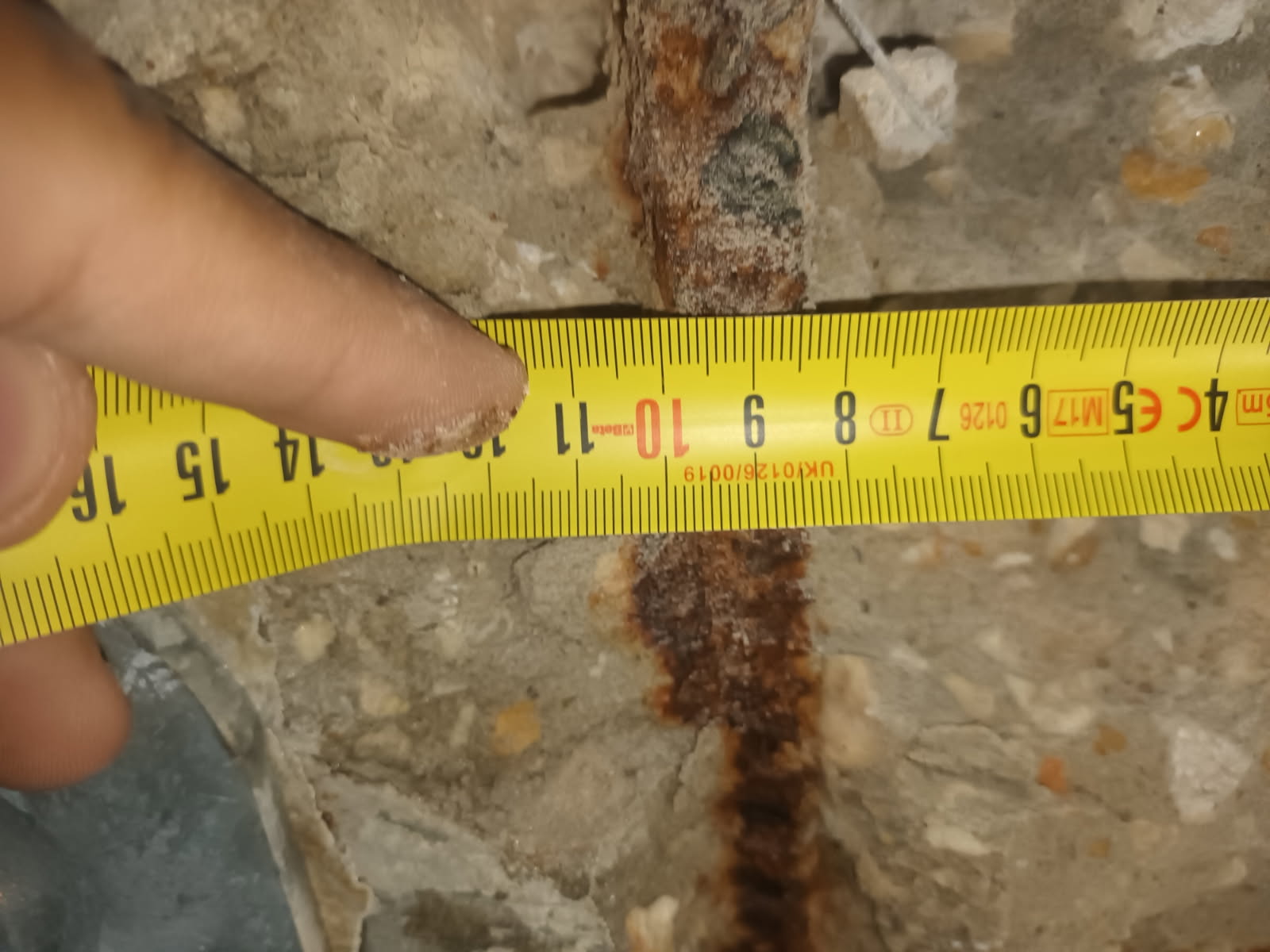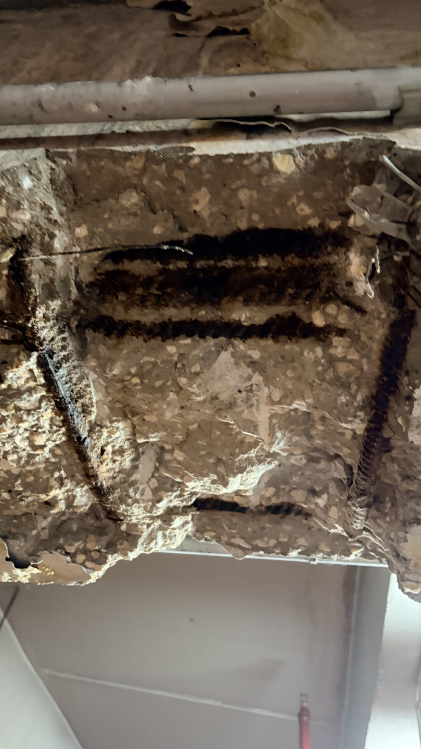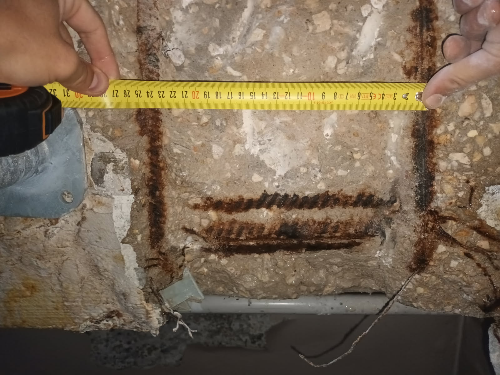 - Sondages destructifs ponctuels réalisés par un technicien spécialisé afin de caractériser le béton et vérifier l’état des armatures (corrosion superficielle ou avancée).